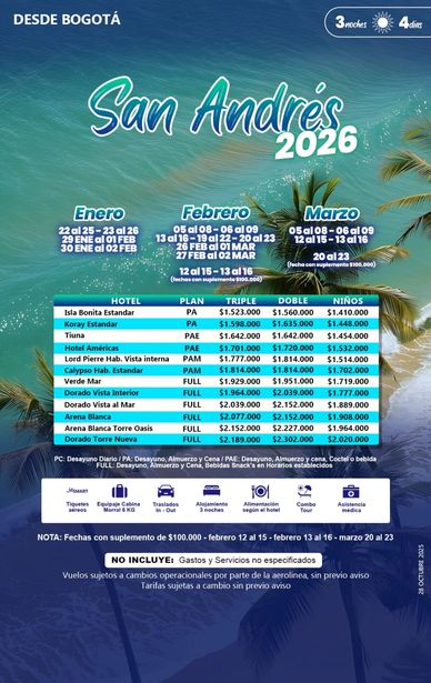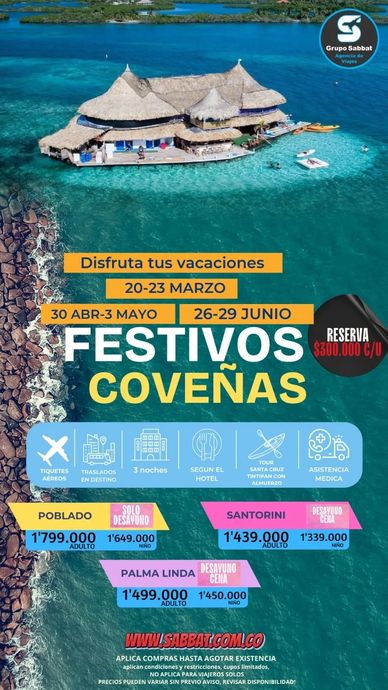 Cancún, Punta Cana, Panamá, Curazao, Aruba, Cuba San Andrés, Cartagena, Santa Marta, Eje Cafetero, Guajira, Amazonas!